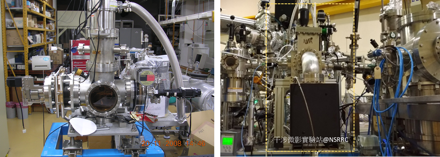 (左)高精度EUV反射儀 (右). TLS 21B2光束線的干涉微影系統