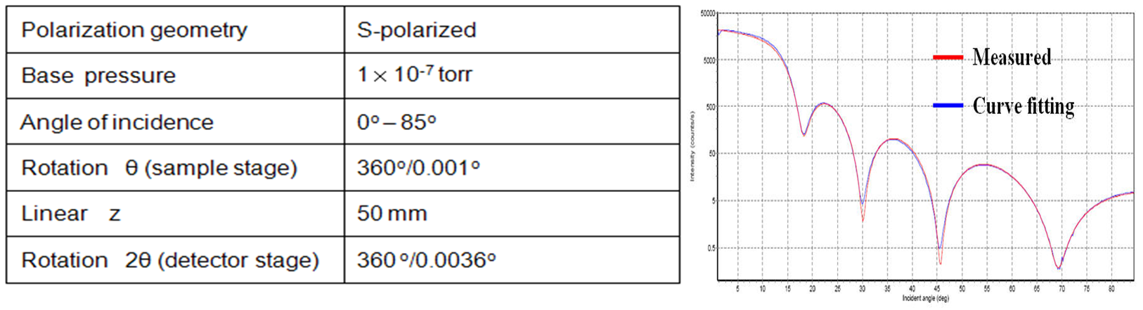 (左).EUV反射儀技術規格 (右). EUV反射儀量測與分析結果