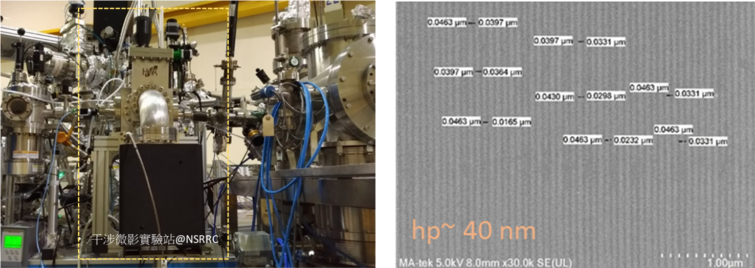 Constructed endstation for EUV interference lithography (left). Generated nano resist pattern with a half-pitch of 40 nm (right).