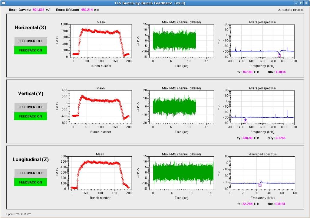 Figure 10、User interface of the TLS bunch-by-bunch feedback system