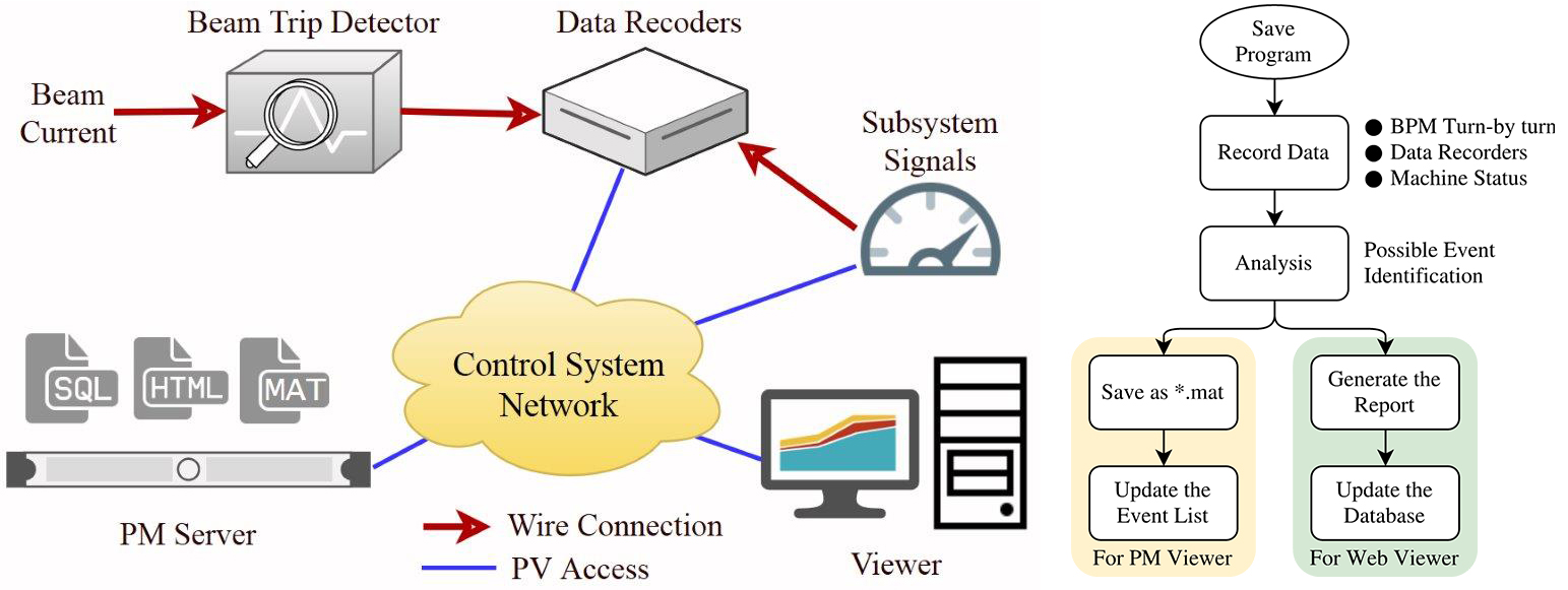 Similar with TLS, TPS beam diagnostic system also provide various parameters of the electron beam such as beam position/orbit, current, betatron and synchrotron frequency, bunch length, beam size as Figure 17 and etc. It could infer machine parameters and beam stability. Combined with orbit feedback system and bunch-by-bunch feedback system, electron orbit could be stabilized and bunch instability could be suppressed to ensure beam stability and reliability which would provide high quality synchrotron radiation and meet requirement of users’ experiments. Furthermore, to quickly clarify the causes of beam trips, post-mortem diagnostic system is developed to collect and analyze all related data as shown in Figure 18. It contributes a lot for improving the machine reliability.