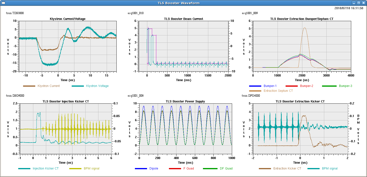 Figure 6、Waveforms acquired from the TLS booster to help operation conditions monitoring.