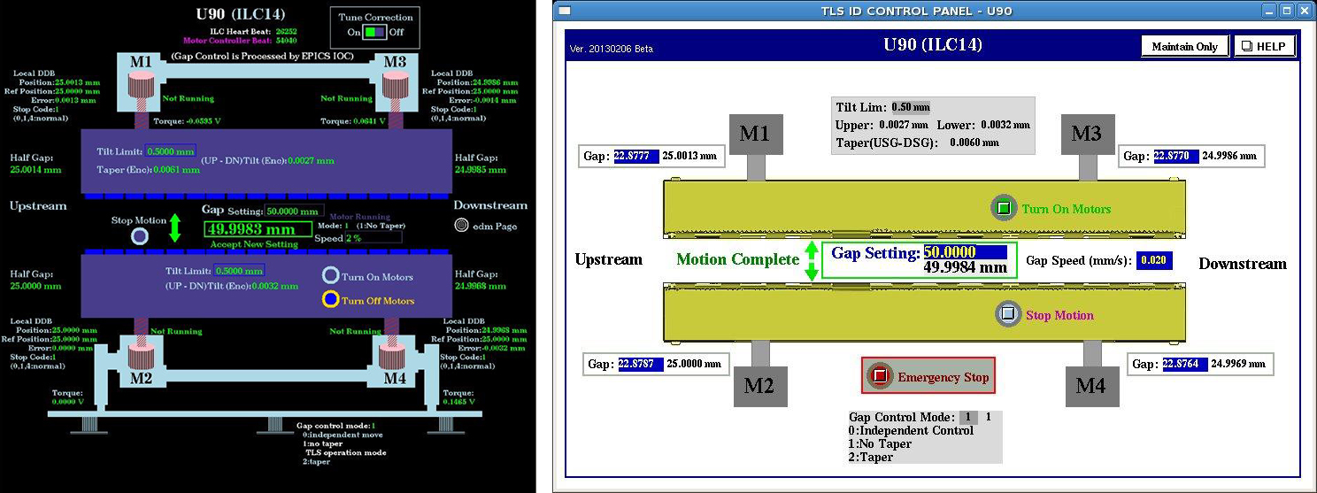 Figure 7、TLS U90 OPI: (a)Original OPI (b) EPICS OPI
