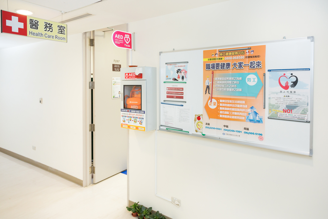 - Automated External Defibrillator (AED): You can find in the health care room and TLS control room.