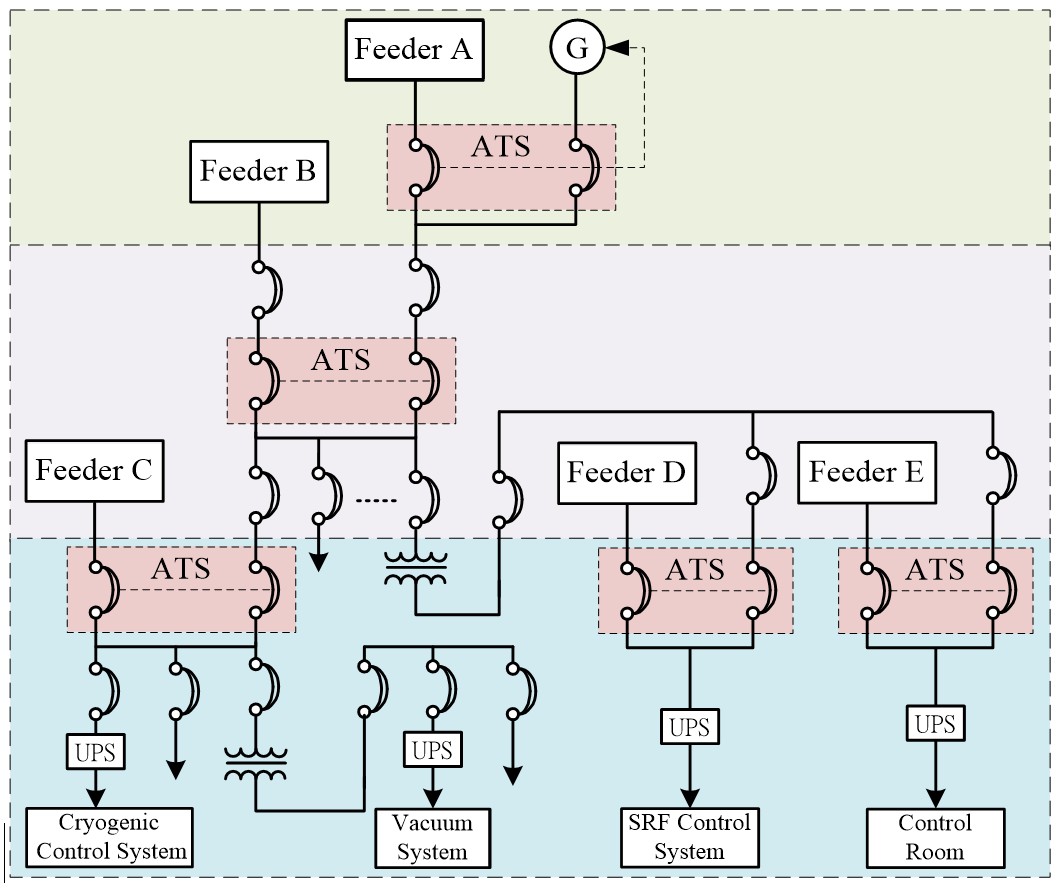 A lot of efforts have been devoted to improve the reliability and the quality of NSRRC electrical power system in recent years. The improvements include the power factor correction, solving nuisance tripping of air circuit breakers, replacing old-type capacitor banks, installing automatic voltage regulators and designing multi-source backup system with automatic transfer switches, Fig. 10. All these improvement works are to ensure the reliable operation of NSRRC power system and to reduce the electrical power accidents during the normal operation. Further, it can also provide the convenience for the electrical power dispatching during the regular maintenance of power system.