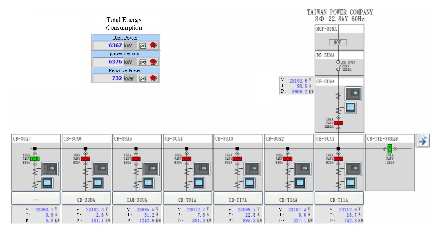 The use of power SCADA system provides the control and the information acquired from remote equipment, Fig. 11 and Fig. 12. It enhances the operator’s ability to manage the power system. Any faults occur in the system can give alarms to the operators, so they can analyze the causes of faults and take immediate measures to clear the faults and recover the system to normal. From analyzing the accumulated long period of data, the conditions of devices in operation can be understood. Thus, the problematic devices can be discovered early and replaced or repaired beforehand to avoid or minimize the false operation of power system. In the near future, many more devices are planned to be included in the power SCADA system to further enhance its function.