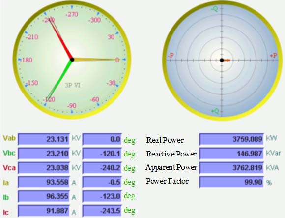 Figure 13: The real time phasor diagram and power parameters at TPS.