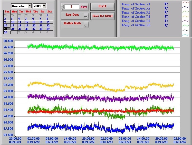 According to previous studies at NSRRC the temperature in the tunnel area of the storage ring is closely related to the stability of electron beam orbit. As the variance of temperature is larger than 0.3 oC, the position of electron beam will be disturbed. By providing sufficient cooling capacity to the tunnel area and deploying thermometer uniformly for monitoring, the air conditioning temperature can be measured precisely. Through the optimized control parameters, the variation of air temperature inside the storage ring tunnel can be regulated within ±0.1 ℃, Fig. 5.