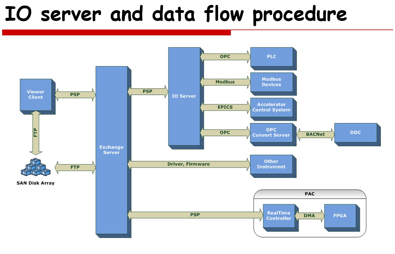 There are various types of devices and equipments used by the Utility and Civil Group. Each system has its own specific communication protocol and graphic control format. It causes some difficulty in management and maintenance. An integrated monitoring and control system was developed by our group to consolidate these different control systems, Fig. 7. Besides retaining the original control architecture of each system, one more layer of management and data analysis was added. Our developed monitoring and control system has adopted the architecture of NI compactRIO, which meets the requirement for the high precision and fast data acquisition demanded by the advanced research.