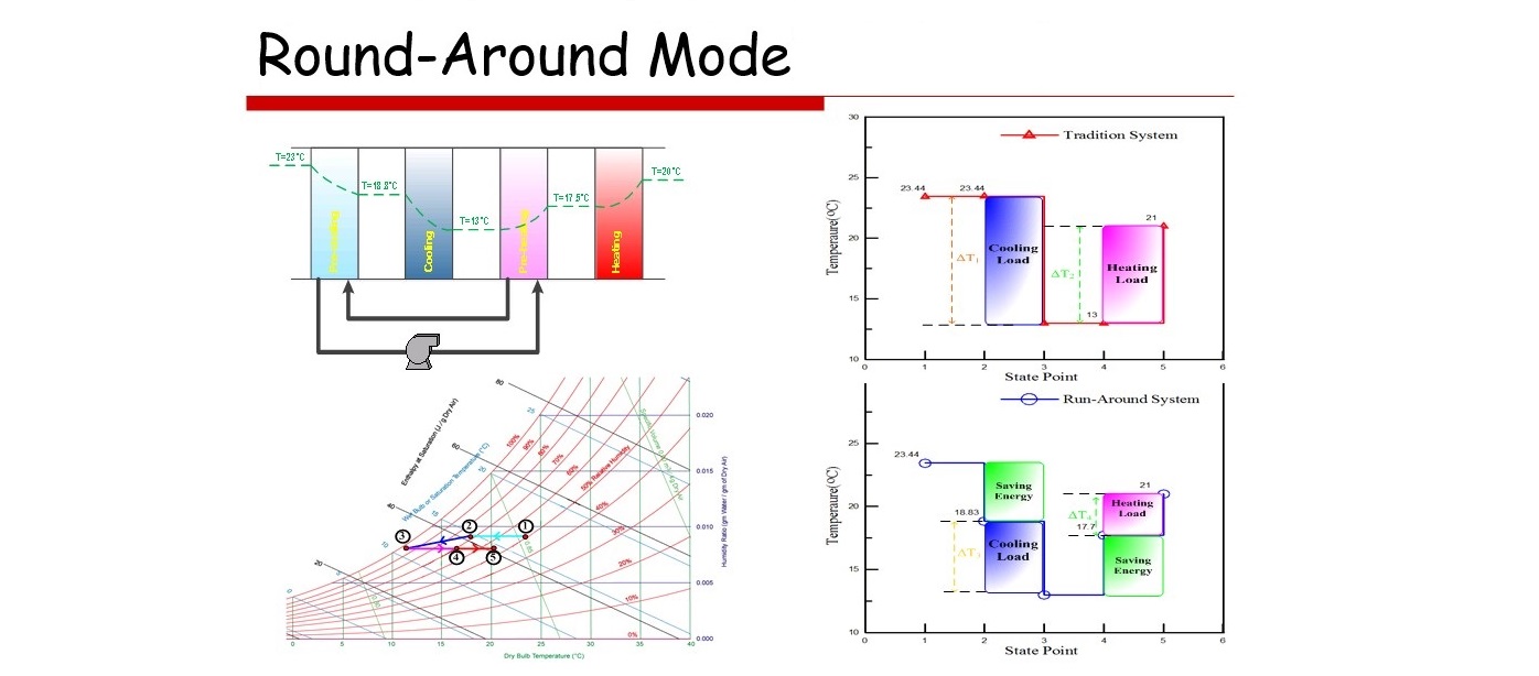 The de-ionized water and the air conditioning system are the main equipments to carry away the hot waste gas to the atmosphere. During the process of thermal transmission the efficiency of equipment and the management of energy saving have affected the power consumption of all facility. Thus, an intelligent energy saving measure was applied to the equipment. Moreover, these logical algorithm and management mechanisms relies on flexible monitoring and control technique, such as the run-around of air handling unit, the enthalpy control of outside air, the optimized operation efficiency, the control technique will all be applied to each control layer.